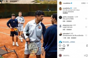 罗纳尔迪尼奥社媒晒出效力巴萨时期与里杰卡尔德、梅西、罗卡(助教)一起打网球的照片,配文:“与朋友们度过的平常一天,哈哈哈。”