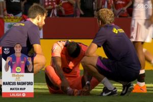 赛后转播镜头显示,本场比赛的全场最佳给到为巴萨打进一球的拉什福德。