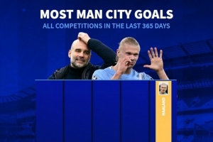 体育资讯10月7日讯 德国转会市场列出了过去一年曼城队内的射手榜,哈兰德35球断层居首。
