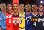 威少的生涯轨迹:2019年离开雷霆,随后的7个赛季效力6支球队