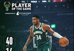 字母哥今天依旧表现非常出色,打了33分钟,20投14中,三分1中1,罚球16中11,空砍全场最高的40分外加14篮板9助攻2抢断2盖帽。前两场比赛,字母哥就分别砍下了37分14篮板5助攻和31分20篮板7助攻的豪华数据,即今天又拿到40+准三双,由此成为历史首位在赛季前三战场都砍下至少35+15+5的球员。赛季前3场,字母哥加起来一共砍下108分48篮板21助攻,场均也可以得到36分16板7助,状态相当火热。