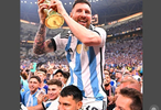 捧起卡塔尔世界杯奖杯的梅西