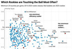VJ前三场比赛场均触球98次,在历届新秀球员中几乎是断档的数据