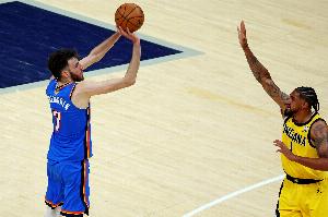体育资讯10月24日讯 NBA常规赛,雷霆半场54-47领先步行者。