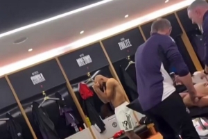 比赛结束之后姆伯莫、阿玛德在更衣室里跳舞,庆祝球队取胜。