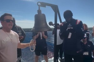 布朗还和来自波士顿的好莱坞影星马克-沃尔伯格一起为比赛进行了敲钟仪式。