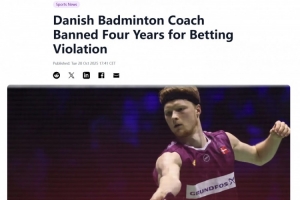 体育资讯10月29日讯 丹麦羽毛球名将安东森的前教练佩尔森因涉违规投注,被世界羽联禁赛4年。