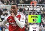 最强带刀后卫?自英超首秀以来,加布里埃尔打入18球冠绝英超后卫