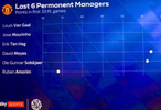 这一成绩不仅让他跻身英超历史上执教开局33轮积分最低的主帅榜单(第六差),同时也是曼联近六任主帅中最差的开局表现。作为对比,之前五位主帅(索尔斯克亚、莫耶斯、滕哈赫、穆里尼奥、范加尔)在执教前33轮的积分都不低于55分。