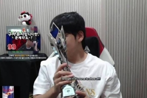 体育资讯11月10日讯 Gumayusi在直播间向粉丝们多角度展示FMVP奖杯;