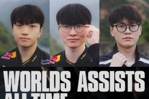 体育资讯11月11日讯 今日赛事官方统计世界赛助攻榜,Faker第一,Keria即将破千!