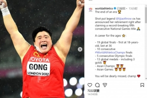 铅球传奇巩立姣在赢得创纪录的全运会五连冠后宣布退役🙏