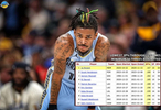 直播吧11月20日讯 今天,媒体@Extra 盘点了一项关于莫兰特的数据。