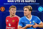 而德转也盘点了霍伊伦在曼联、那不勒斯效力时期的进球数据,具体如下: